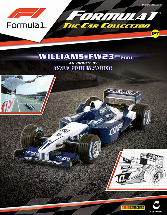 The F1 Car Collection UK is mainly a subscription based set of Diecast Models available in the UK. Each issue comes complete with a magazine detailing each car along with the circuits and other interesting F1 information. The car and magazine costs around £10.99 and subscribers also received a number of free gifts. At the present time the F1 Car Collection UK is planned for 140 models. A limited number of models are available to purchase via the Panini Shop.