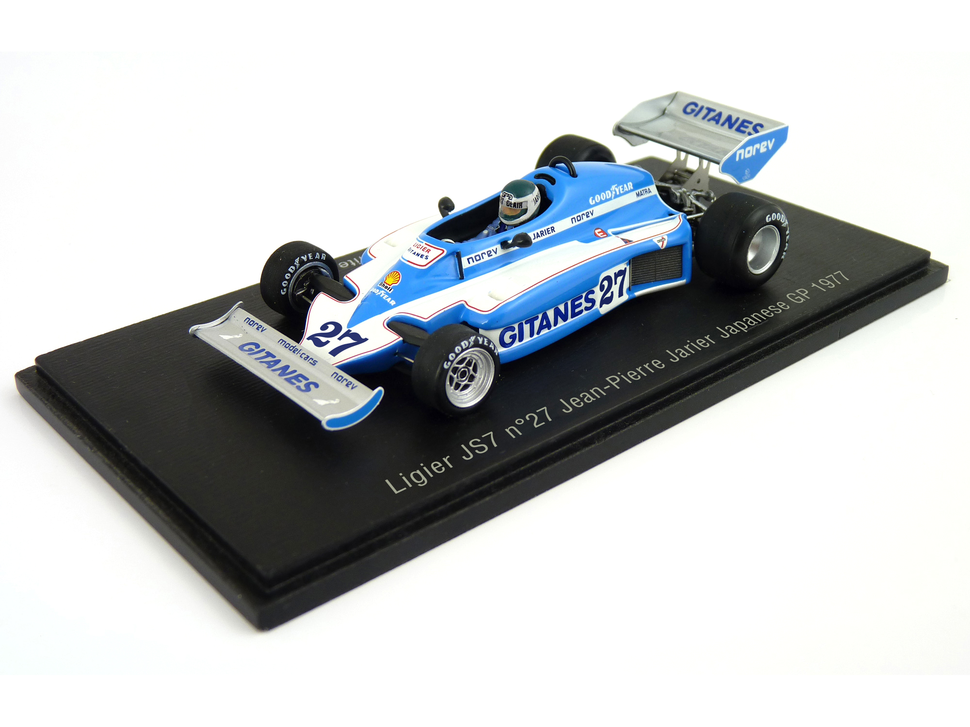 The first Formula One car designed, built and entered by the French Ligier team was the JS5. A very distinctive design, sometimes known as the Teapot, was powered by a Matra V12 Engine. Entering a single car for Frenchman Jacques Laffite, the team had an excellent first year in F1 which included 5 Top 4 finishes alomg with a Pole Position and Fastest Lap. After the first three races, tall airboxes were banned and the revised low air intake was adopted.